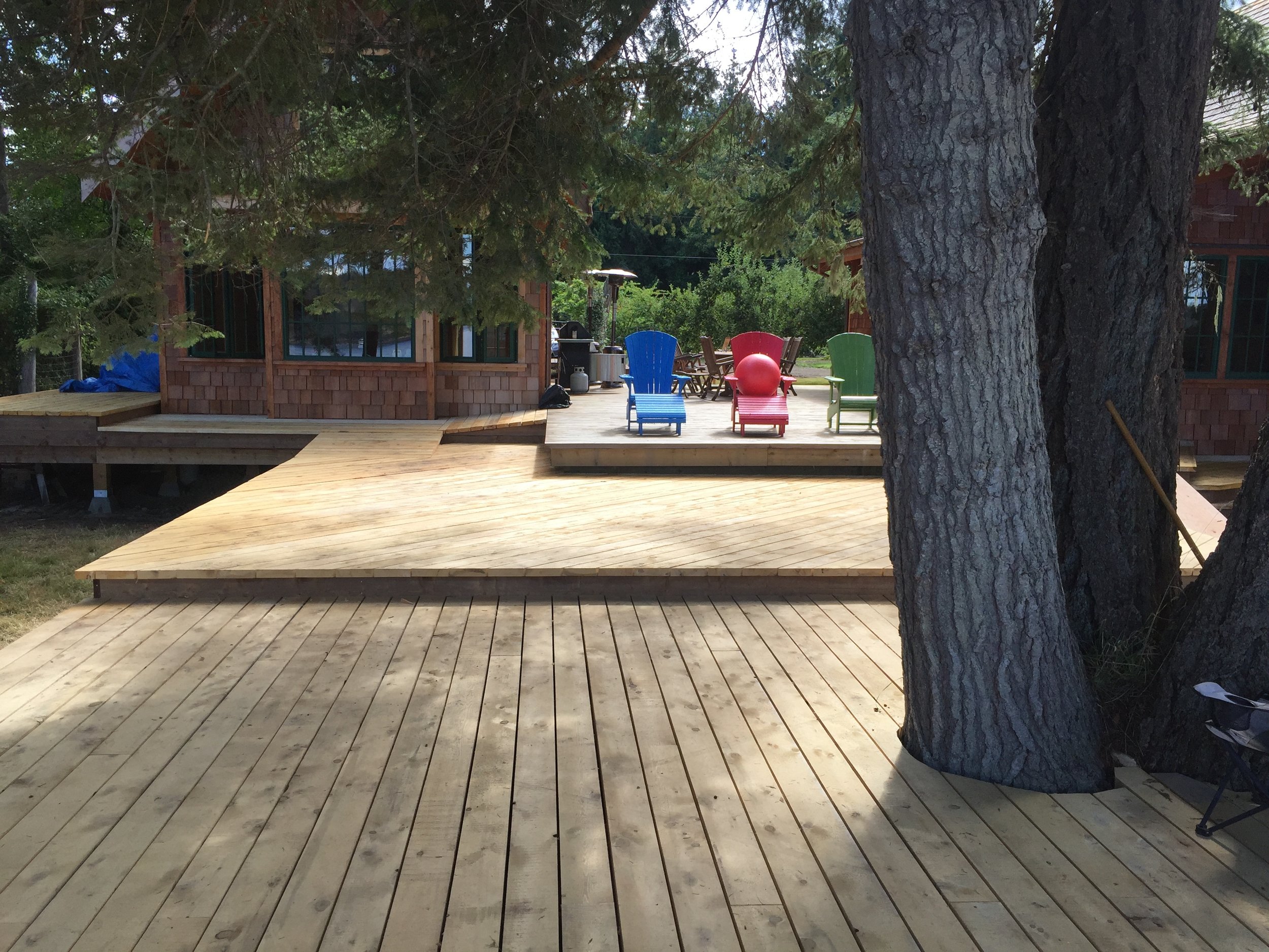 Rustic waterfront retreat on sunny Hornby Island. This project features 5 small cabin buildings connected through yellow cedar decks and boardwalks.